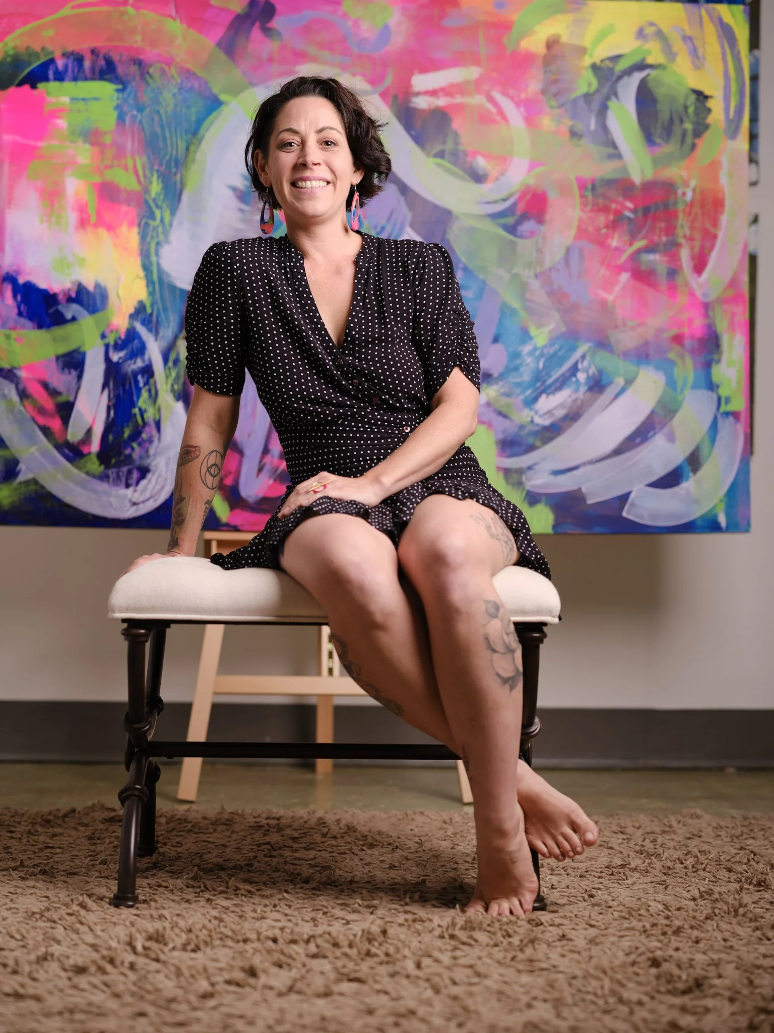 Little photoshoot with photographer Eric Pratt. Hand-painted dress with ArtPop billboard in the back.
